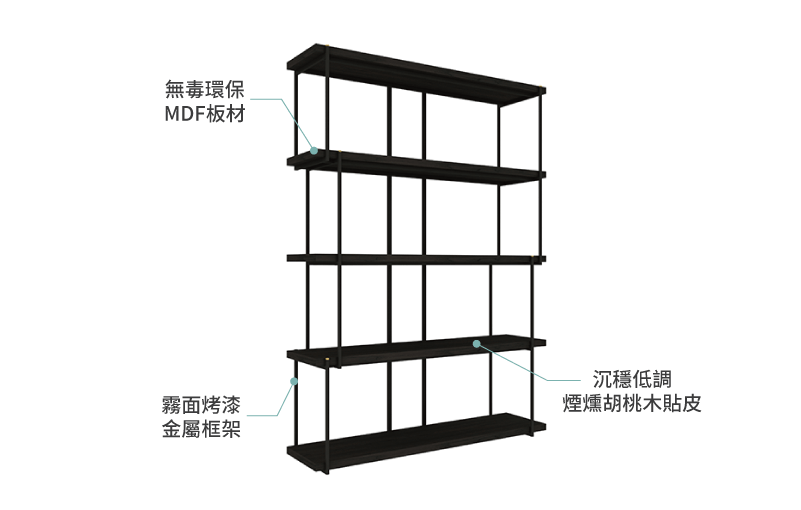 胡桃木細膩溫柔的木質紋理帶給空間舒適寬心的氛圍,在顏色的處理上,我們搭配了較沉穩的煙燻色系,金屬材質的裝飾小巧思,讓深色系的家具多了一些華麗的元素,異材質的金屬框架結構,帶來不同的視覺變化。