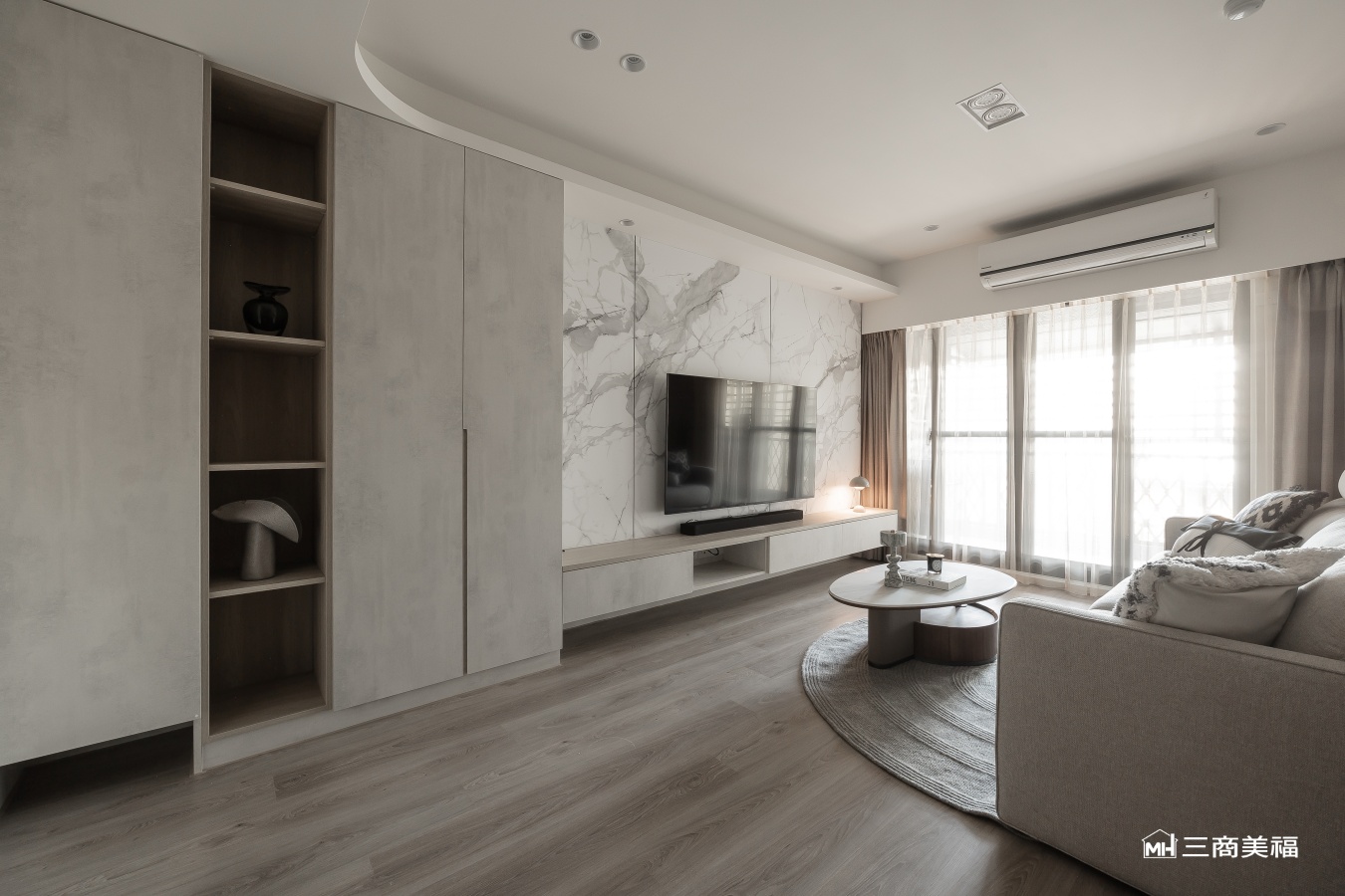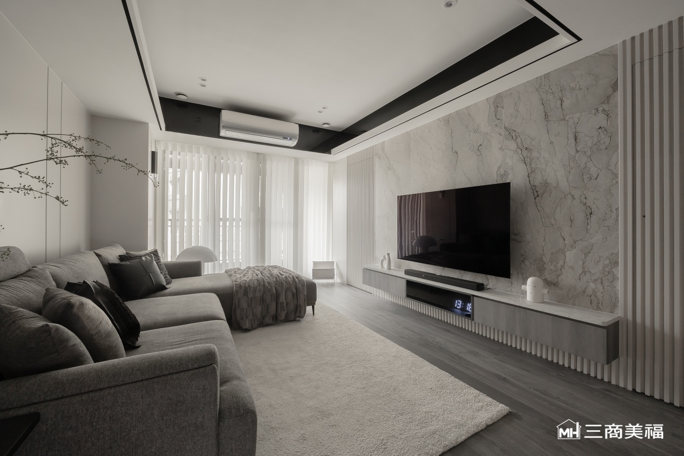 屋主偏好沉穩俐落的現代風格,希望新家能在簡約之中展現細緻質感,同時兼顧日常生活的舒適與收納需求,三商美福設計團隊便以黑、灰、白為主軸,搭配鏡面、金屬與石紋材質點綴,透過材質紋理與光影層次的堆疊,打造5...