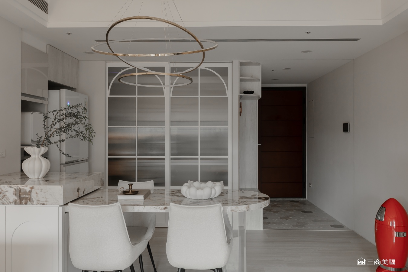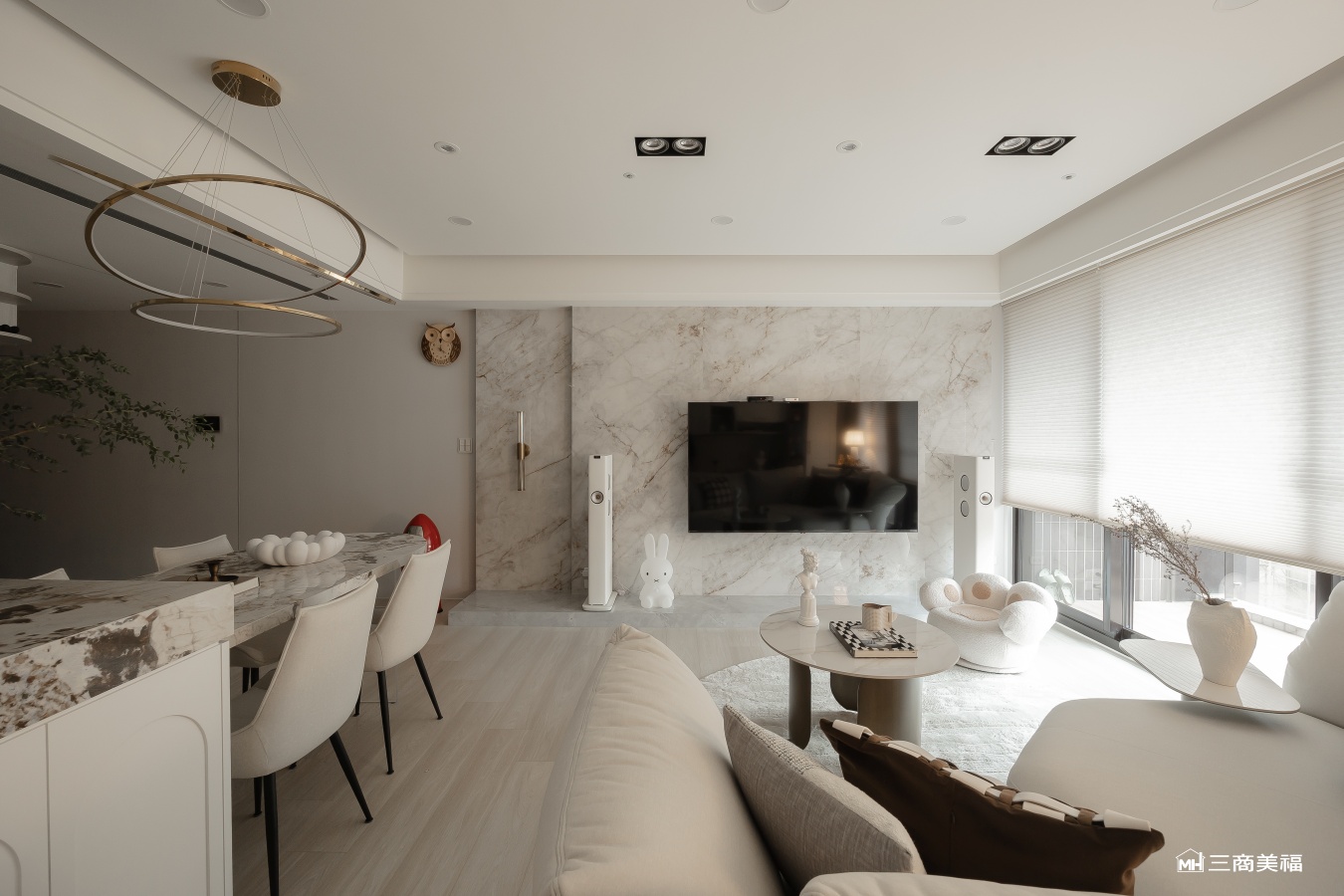 原本出租的35年老屋,隨著孩子即將北上念書,屋主決定重新整理規劃,讓空間回歸自住需求,因喜歡淺色調的明亮感,以及帶點石紋質感的輕奢氛圍,委託三商美福設計團隊操刀,從平面配置到材質搭配,逐一梳理生活所需...